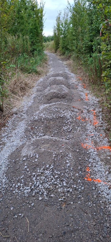 De kombochten krijgen hun vorm, het pad wordt verdicht en de obstakels langaam aan hun vorm.