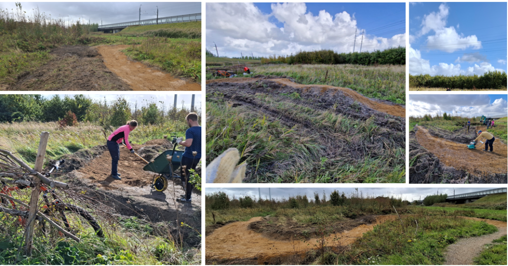 Ondanks dat we het verloop van de route niet hebben aangepast ziet dit er nu heel anders uit. Tijdens het bouwen hebben we regelmatig getest met de fiets en volgens ons is dit nu voor bijna iedereen wel een stuk leuker. We waren op tijd klaar en konden zelfs nog wat doen aan een andere bocht. Die hebben we een ruggetje gegeven. Daar zullen we nog wel een keer wat aan moeten doen, maar voor nu is er alvast een begin gemaakt en kunnen we fietsers binnen de baan houden.